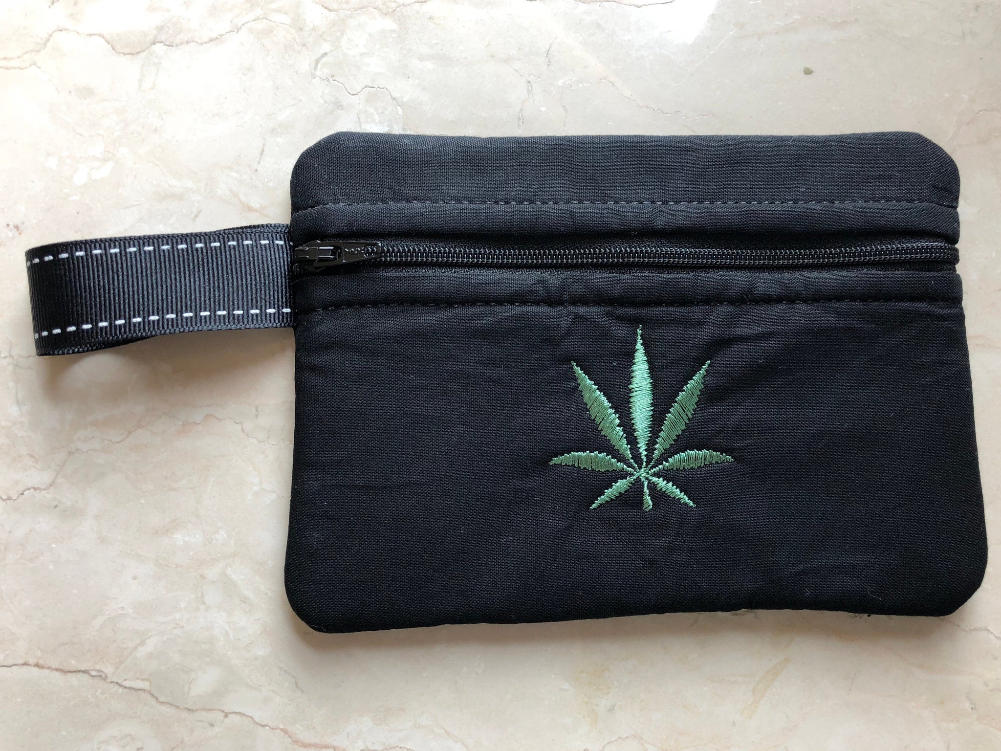 Marijuana Single Leaf Small Embroidered Pouch | stitchywoman.net
